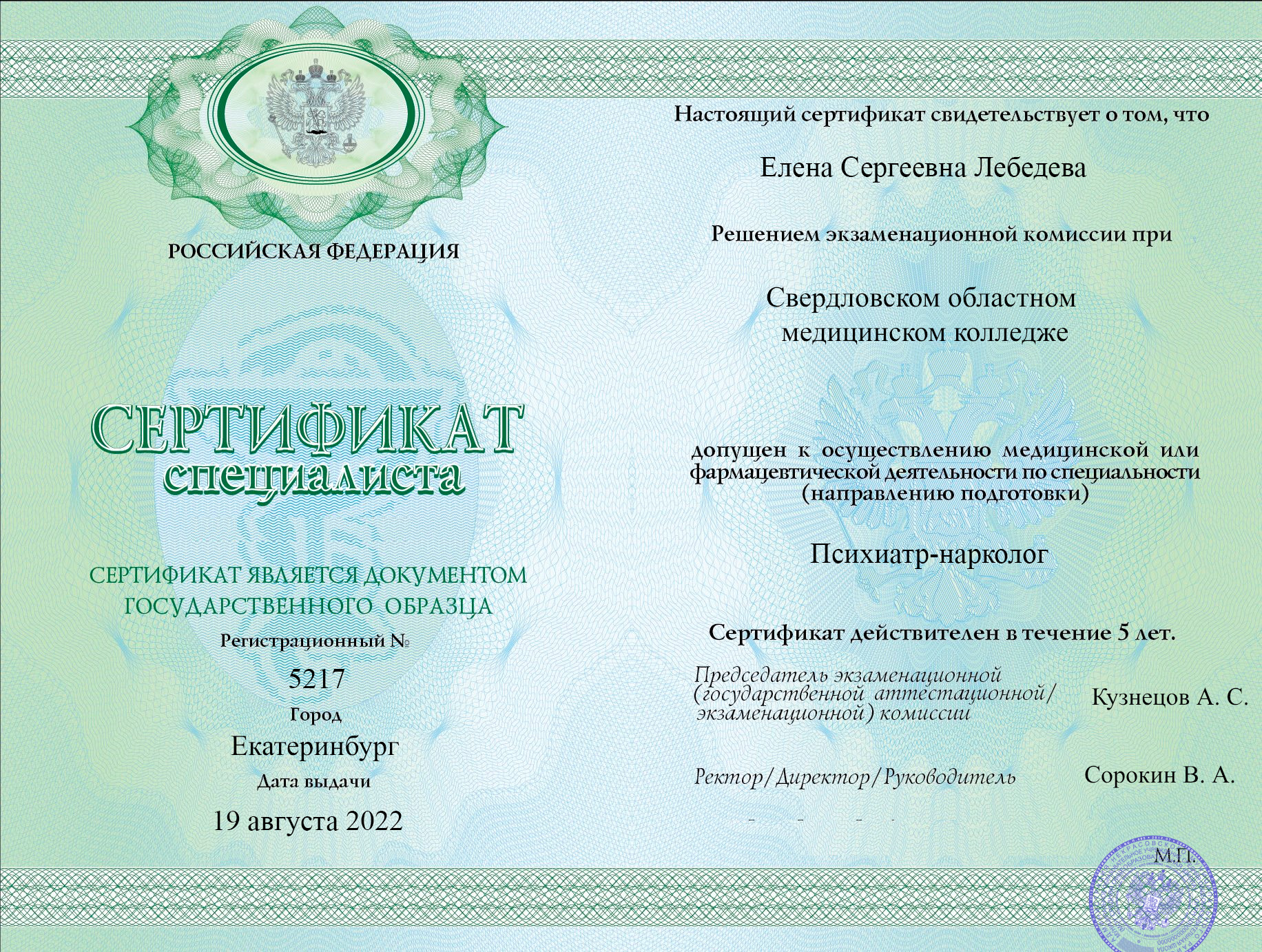 Елена Сергеевна Лебедева врач нарколог клиники доктора Стукаловой в Борзе